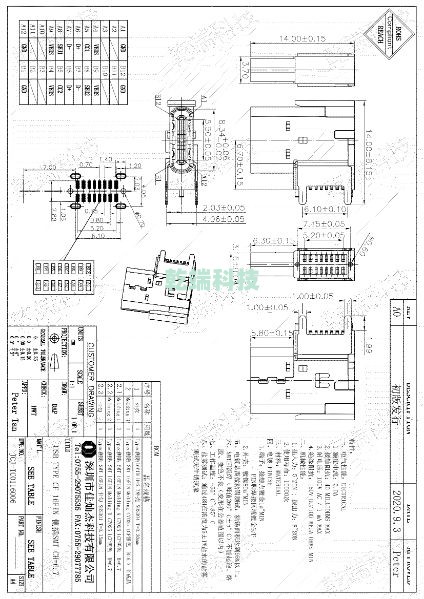Typec CF 側(cè)貼 SMT 16PIN C7025 LCP黑色 H=6.7 &(外殼帶彈片)