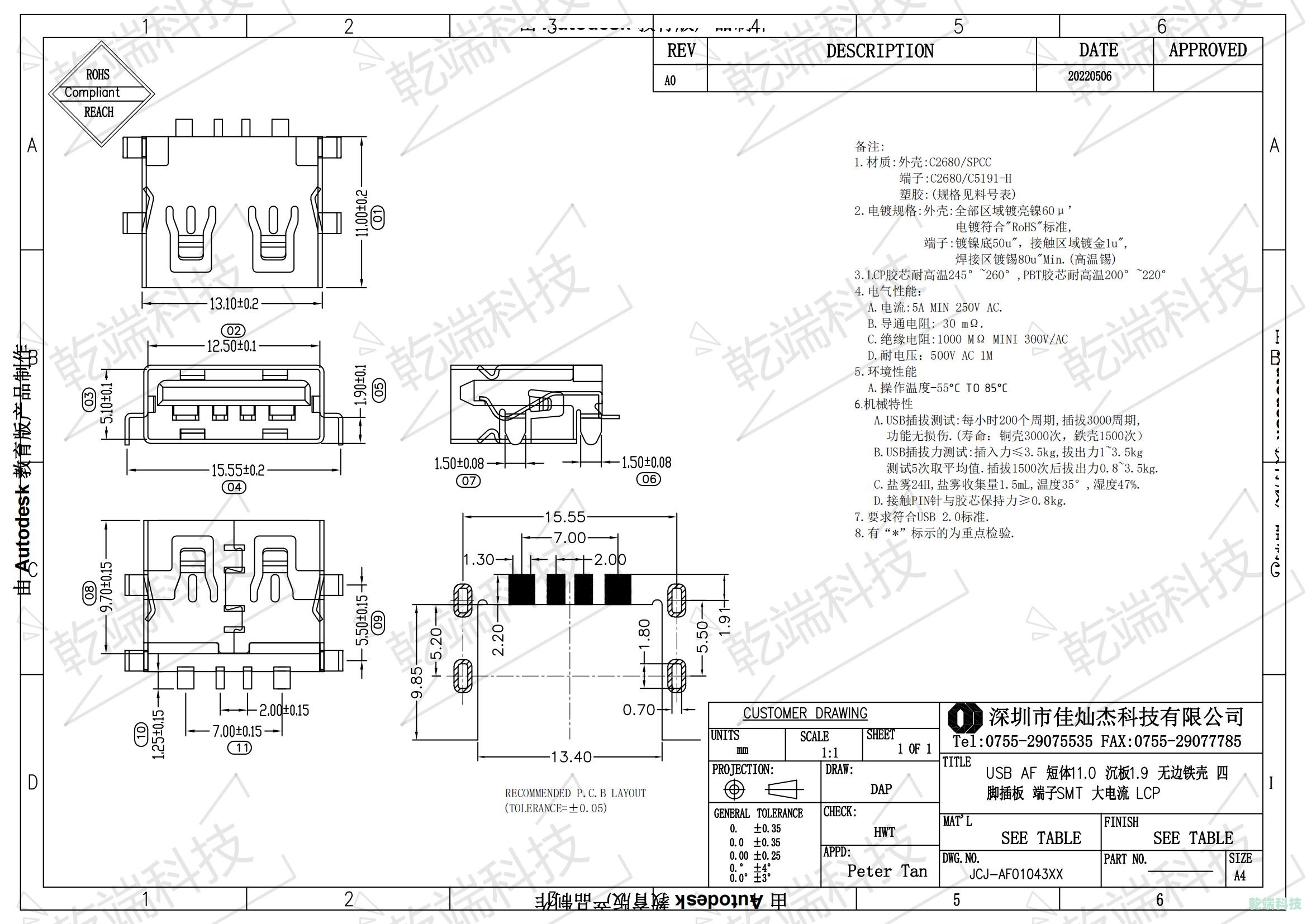 膠芯:1.材質(zhì):LCP&PA9T;2.顏色:藍(lán)色&黃色&綠色&黑色;可定制